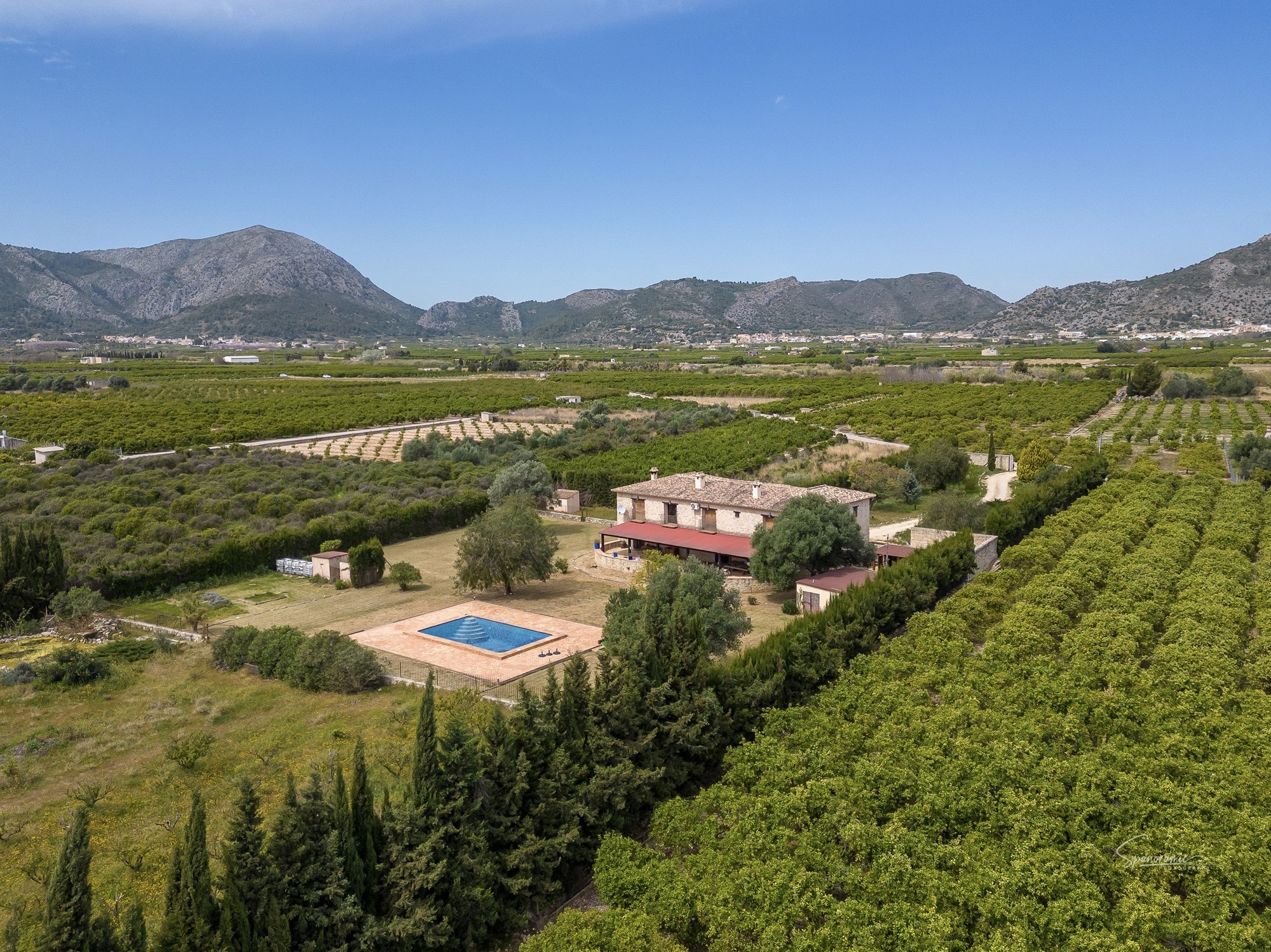 🌿 Majestic Stone Country Estate in Benidoleig A Rare Luxury Retreat with Mountain Views, Total Privacy & Mediterranean Soul Welcome to one of the most impressive country homes in the Marina Alta — an extraordinary stone-built estate set behind grand electric gates, surrounded by nature, and framed by the dramatic mountains of the Costa Blanca. Built in 2007 with timeless craftsmanship and positioned on a fully walled and gated plot, this spectacular property offers complete seclusion, exceptional space, and the atmosphere of an exclusive country residence. From the moment you enter the sweeping driveway, lined with mature greenery and opening onto vast grounds, you immediately feel the sense of arrival — the scale, the serenity, the luxury. ✨ A House That Feels Like a Private Boutique Hotel The façade alone is breathtaking: traditional stonework, symmetrical architecture, natural colours blending into the landscape, and a long terrace that looks out over the expansive gardens and citrus fields. Inside, the home opens into a grand entrance hall, setting an elegant tone for the spacious interiors filled with natural light. The property features: 5 large bedrooms 5 bathrooms Fireplaces in the bedrooms — rare, atmospheric, and perfect for cosy winter nights Central heating and air conditioning A magnificent master suite with a standalone bathtub overlooking the countryside — an extraordinary moment of luxury Every window frames a postcard view: endless green fields, mountains rising in the distance, and the Mediterranean blue sky. 🌅 A Private Oasis With Exceptional Outdoor Living The grounds are vast — perfect for events, yoga retreats, boutique tourism, horses, or simply absolute privacy. Large swimming pool with jaw-dropping mountain backdrop Multiple flat garden areas for outdoor lounges, platforms or meditation spaces Mature trees providing natural shade and charm Off-road parking for 10 or more vehicles Agricultural water + supply from Ràfol Not overlooked — yet with a few neighbours nearby for security This is a rare blend of isolation, beauty, and connection. 📍 Prime Countryside Location — Close to Everything Although the home feels like a private resort, it is perfectly located: 3–4 minutes to Benidoleig village (restaurants, shops, pharmacy) 10 minutes to Ondara & Portal de la Marina 15–20 minutes to the beaches of Dénia and Jávea 15 minutes to La Sella Golf 1 hour to both Alicante & Valencia airports It’s countryside living without compromise — peaceful, yet connected. 🌟 A Truly Special Property Whether you dream of a luxurious family estate, a wellness retreat, a rural boutique hotel, an exclusive rental, or simply your own private sanctuary, this property offers scale, beauty, architectural charm, and potential that is almost impossible to find today. This is one of the most unique country houses on the Costa Blanca — and it must be experienced in person. 📩 Contact us today to arrange a private viewing of this magnificent estate.